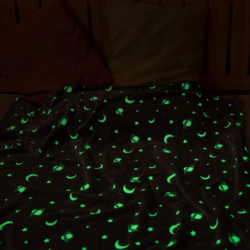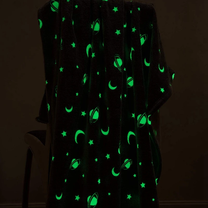 Glow Blanket Super Soft Fuzzy Fluffy Plush Fleece Decorated Star Moon Healing Christmas Birthday Gi LHA