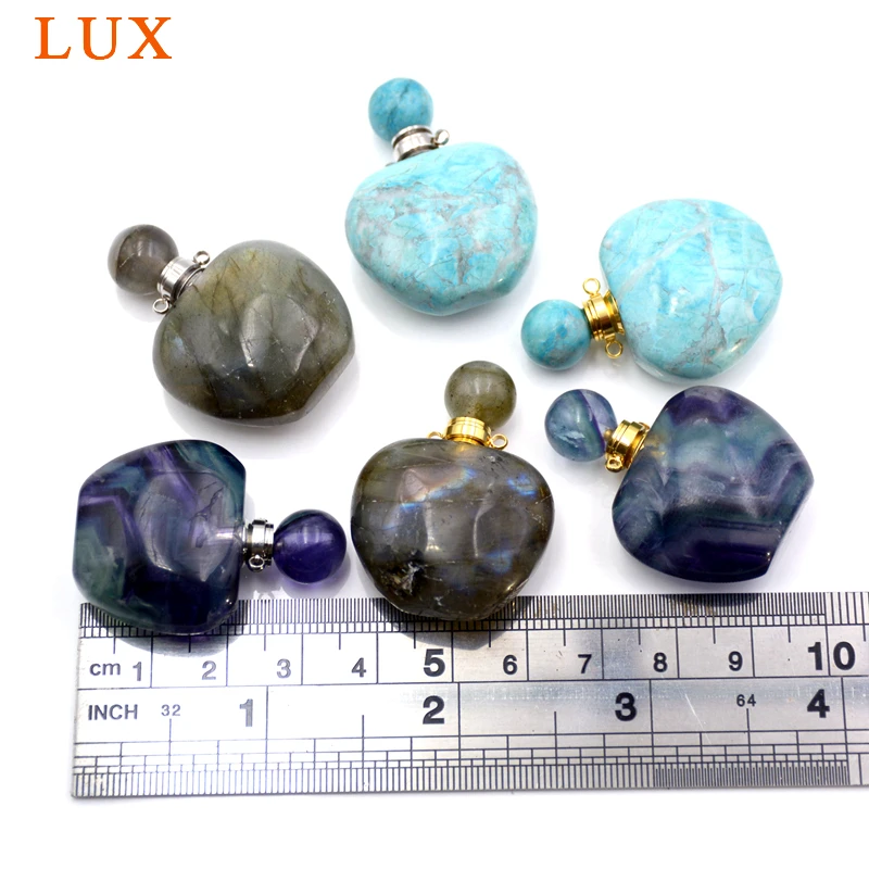labradorite Fluorite turquoises Stone Perfume Bottle Pendant Necklace Healing Crystal Quartz Perfum OKN