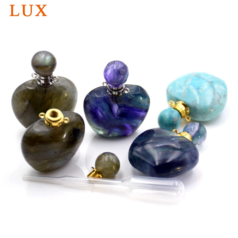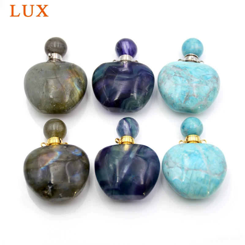 labradorite Fluorite turquoises Stone Perfume Bottle Pendant Necklace Healing Crystal Quartz Perfum