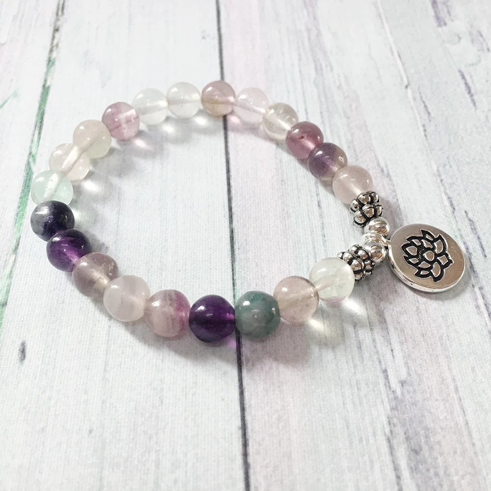 Ruberthen Natural Fluorite Yoga Bracelet Fashion Girl`s Chakra Jewelry Aura Cleansing Healing Cryst SYR